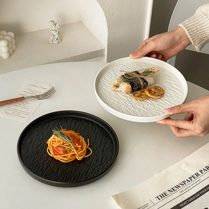 陶瓷岩石纹牛排餐盘高级感轻奢家用创意意面西餐平盘蛋糕甜品摆盘