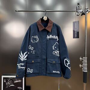2025年秋季减龄少女风猫咪涂鸦印花翻领长袖宽松休闲风衣