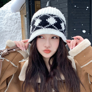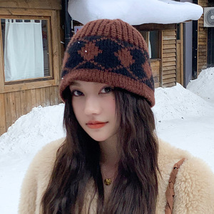 韩系复古菱格针织帽百搭时尚韩版潮流套头帽户外秋冬保暖毛线帽女