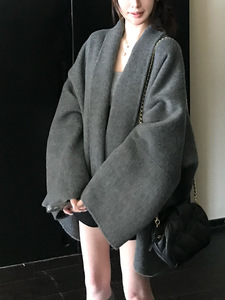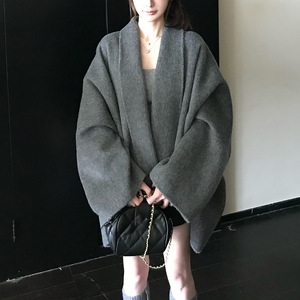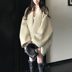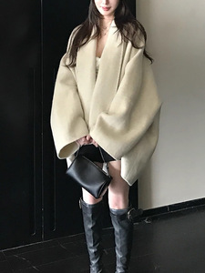 Row系斗篷大衣羊毛双面呢外套秋冬慵懒风小个子前短后长冬季外套