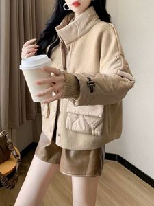 设计感拼接棉服毛衣外套2025秋冬新款韩版宽松短款休闲针织开衫女