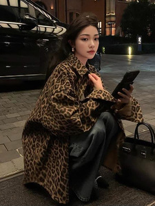 美式复古豹纹外套女秋季新款休闲宽松长袖牛仔棉衬衫韩版夹克上衣