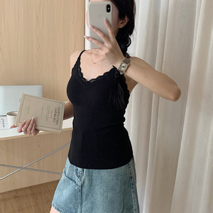 暖小艾®3129心动暴击蕾丝磨毛吊带背心纯色美背带胸垫保暖上衣女