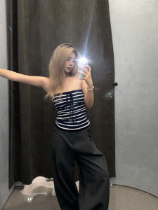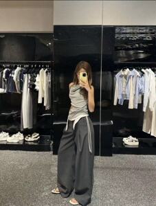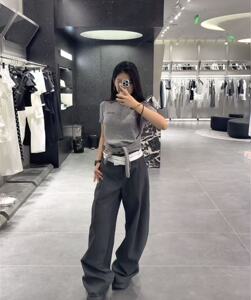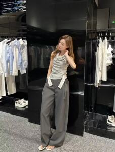 ANN南油新款设计感直筒休闲翻腰头西装裤