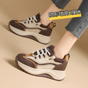 6cm拼色阿甘鞋女2025新款秋季轻便软底女鞋百搭德训增高老爹鞋子