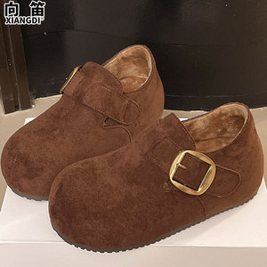 5cm内增高女鞋牛皮版全包勃肯鞋加绒2025新款秋冬季保暖二棉鞋子