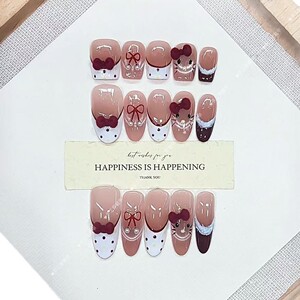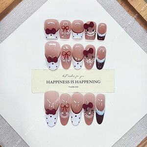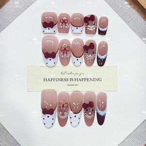 黛月达 手工穿戴甲秋冬新款法式波点KT手绘豹纹气质猫眼美甲贴片