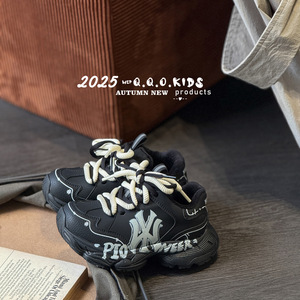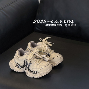 QQO童鞋 2025年冬季新款儿童字母涂鸦运动鞋男女童轻便保暖老爹鞋
