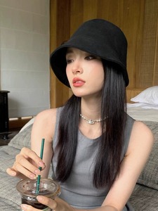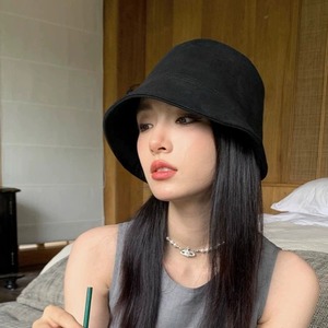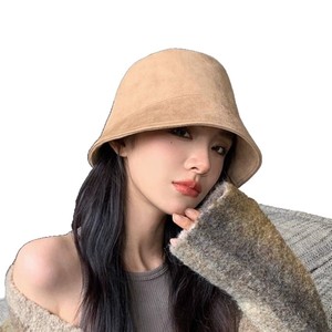 麂皮绒渔夫帽2025新款女秋冬季百搭大头围素颜气质遮脸水桶盆帽子