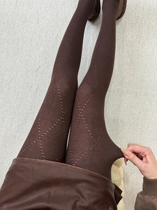 秋冬咖色打底袜纯色连裤袜菱格镂空纯棉质网眼弹力显瘦腿美腿保暖