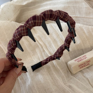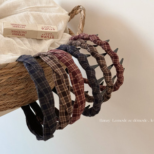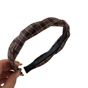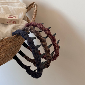 韩版简约格纹带齿波浪发箍麻花头箍女百搭外出压发发卡网红发饰品