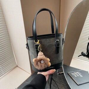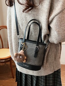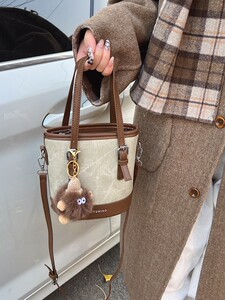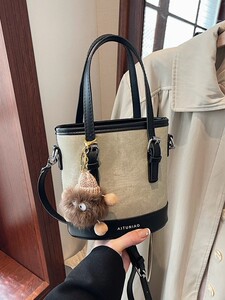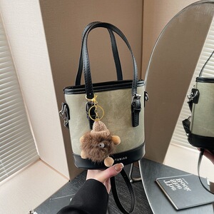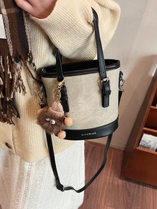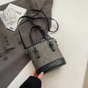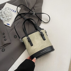 跨境简约撞色小包包女2025秋冬新款高级手提水桶包复古通勤斜挎包