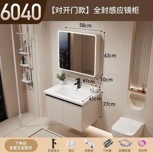 60x40CM 对开门陶瓷盆柜-全封感应镜柜-卡其色