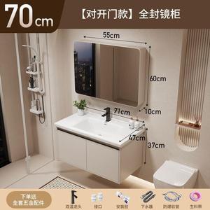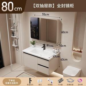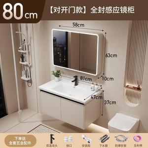 81x47CM 双抽屉陶瓷盆柜-全封感应镜柜-卡其色
