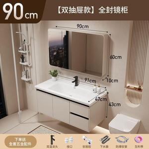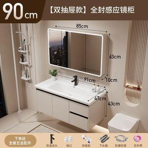 91x47CM 双抽屉陶瓷盆柜-全封感应镜柜-卡其色