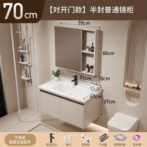 71x47CM 对开门陶瓷盆柜-半封智能镜柜-卡其色