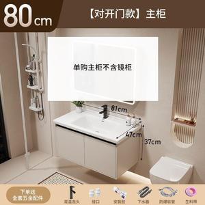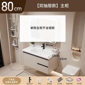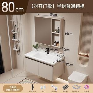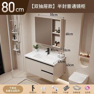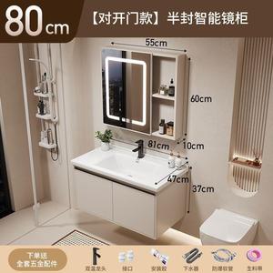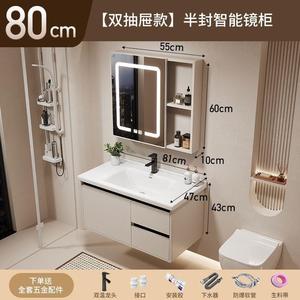 81x47CM 双抽屉陶瓷盆柜-半封智能镜柜-卡其色