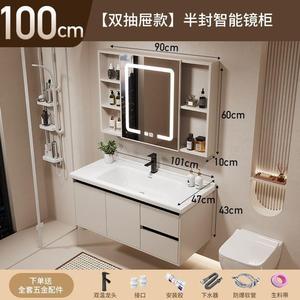 101x47CM 抽屉陶瓷盆柜-半封智能镜柜-卡其色