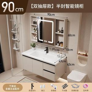 91x47CM 双抽屉陶瓷盆柜-半封智能镜柜-卡其色