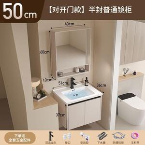 51CM 对开门陶瓷盆柜-半封普通镜柜-卡其色