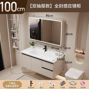 101x47CM 抽屉陶瓷盆柜-全封感应镜柜-卡其色