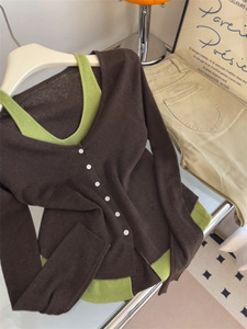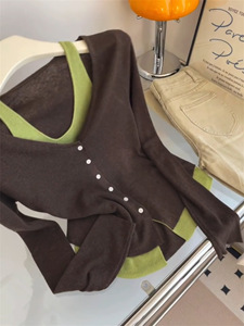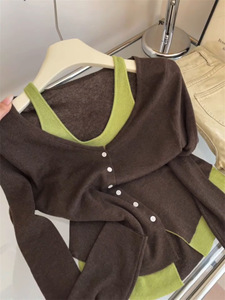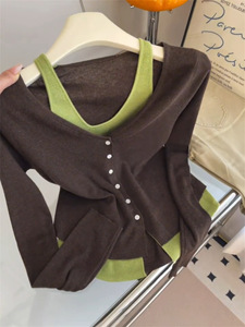 复古假两件女士针织衫2025秋季新款女装韩系气质长袖上衣女A7573