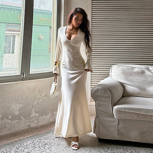 XY25341PFO跨境新款辣妹晚礼服长裙修身长袖纯色气质包臀裙连衣裙