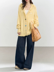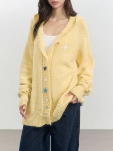 iNSLiSA 早秋慵懒风连帽针织开衫外套女5新宽松中长毛衣