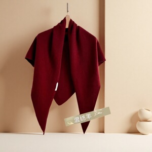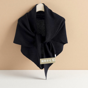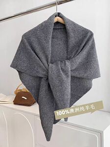 羊毛混纺针织纯色三角巾韩范披肩女秋冬季百搭气质优雅直播围巾