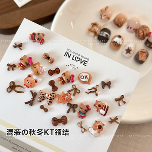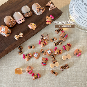 美甲饰品混装豹纹领结可爱立体美拉德kt猫冰透小熊卡通美甲装饰品