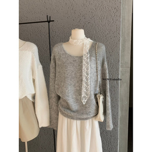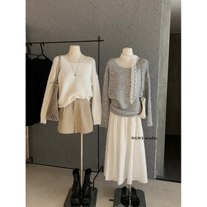 塞纳【WGWE】7345秋装2025新款时尚镂空拼接毛衣针织衫上衣