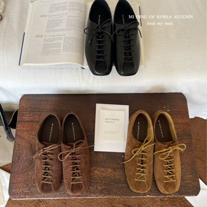 2025新款小众乐福鞋复古懒人新款方头浅口系带平底鞋女