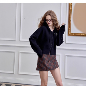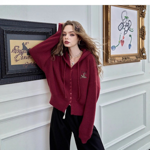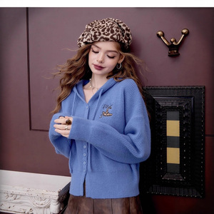 妖精的口袋慵懒风连帽毛衣开衫女2025年春季新款甜美软糯短款上衣