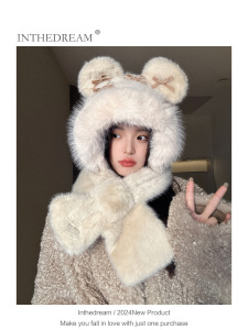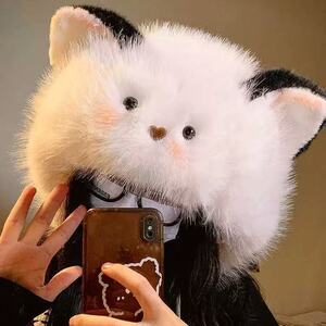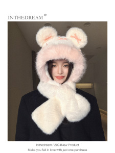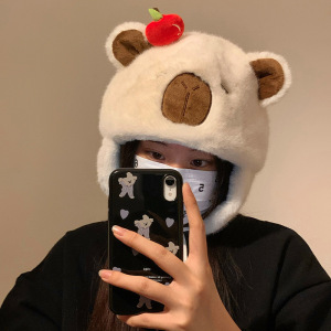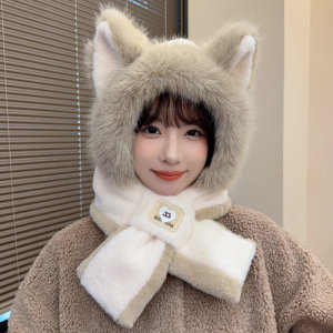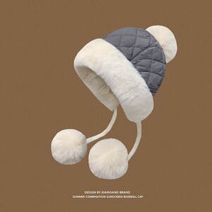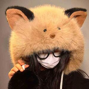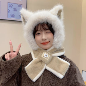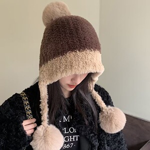 可爱猫耳朵毛绒帽子女秋冬季加绒加厚保暖防寒腮红护耳雷锋帽