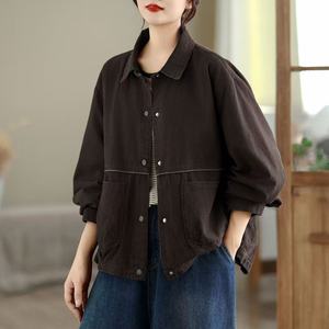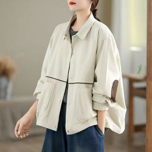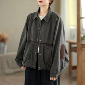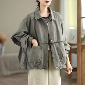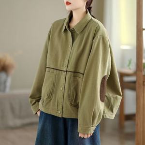 2025新品文艺复古休闲宽松长袖双口袋贴布外套
