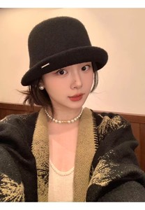 高品质卷边羊毛小礼帽女秋冬款时尚千金帽子显脸小渔夫帽子女盆帽