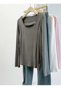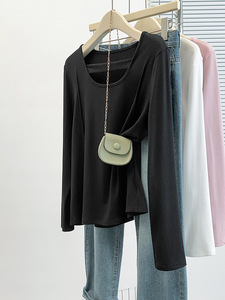 2025秋季新款胖mm大码设计感百搭鱼骨修身长袖打底T恤上衣
