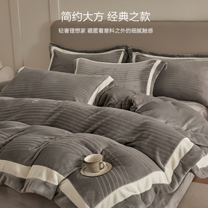 高端加厚牛奶绒提花绒四件套冬季保暖双面珊瑚绒床单被套床上用品