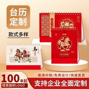 2026年台历商务办公记事桌面摆件创意中国风国潮马年烫金月历定制