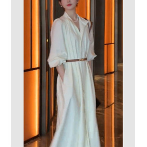 高级感巨好看早秋长袖白色衬衫连衣裙2025超火出席重要场合的裙子