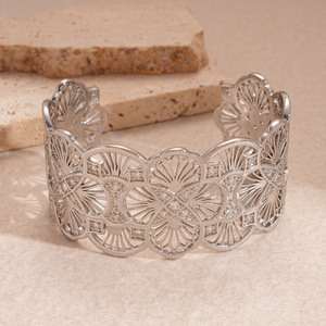 18k真金电镀欧美金属感镂空花朵开口手镯跨境重工小众高级感手饰