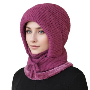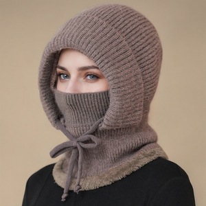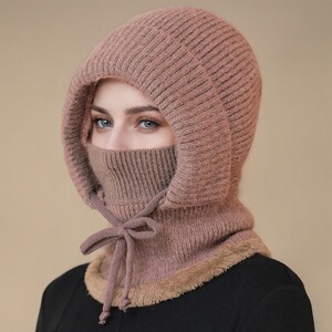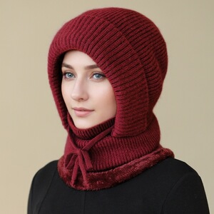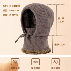 跨境中老年帽子女秋冬时尚妈妈保暖连体帽围脖一体护耳针织毛线帽