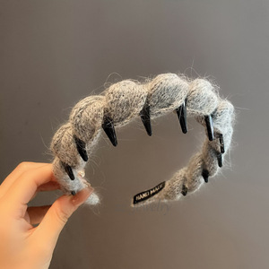 氛围感秋冬毛线带齿防滑发箍女时尚气质高颅顶外出百搭发卡发饰