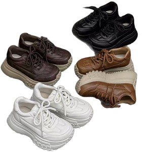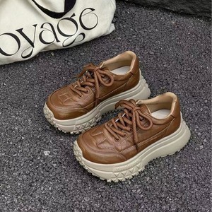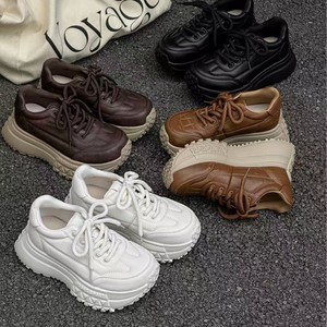 超轻厚底皮面阿甘老爹鞋ins潮女2025秋冬款休闲运动百搭增高单鞋
