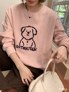 琪镌绘制秋季新款慵懒风圆领卫衣女薄款休闲宽松韩版百搭上衣6985
