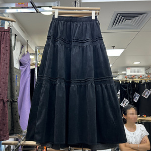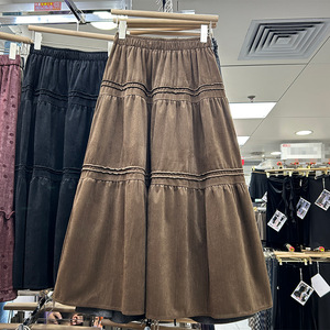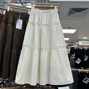 时尚杏色显瘦垂感蛋糕裙女2025秋冬新款A字休闲百搭中长款裙530M