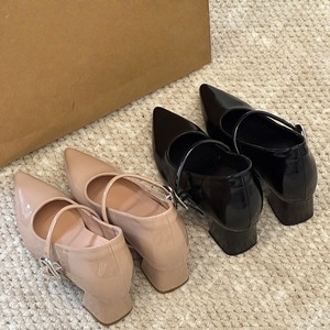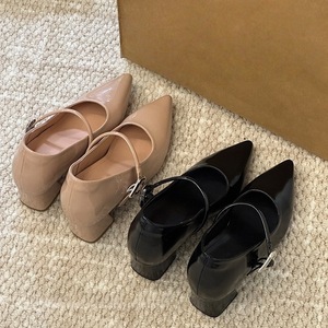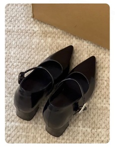 不累脚!内增高粗跟尖头2025裸色高跟鞋浅口玛丽珍鞋单鞋女