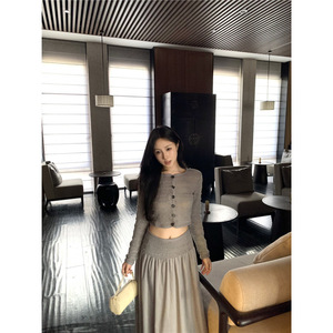 昕可达 私享时刻 条纹针织上衣长半裙休闲两件套