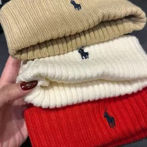 秋冬休闲出游小马刺绣针织时尚麻花套头帽保暖百搭情侣休闲毛线帽