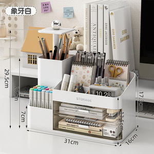 桌面收纳盒抽屉式学生办公室书桌文具大容量置物架多功能桌上笔筒